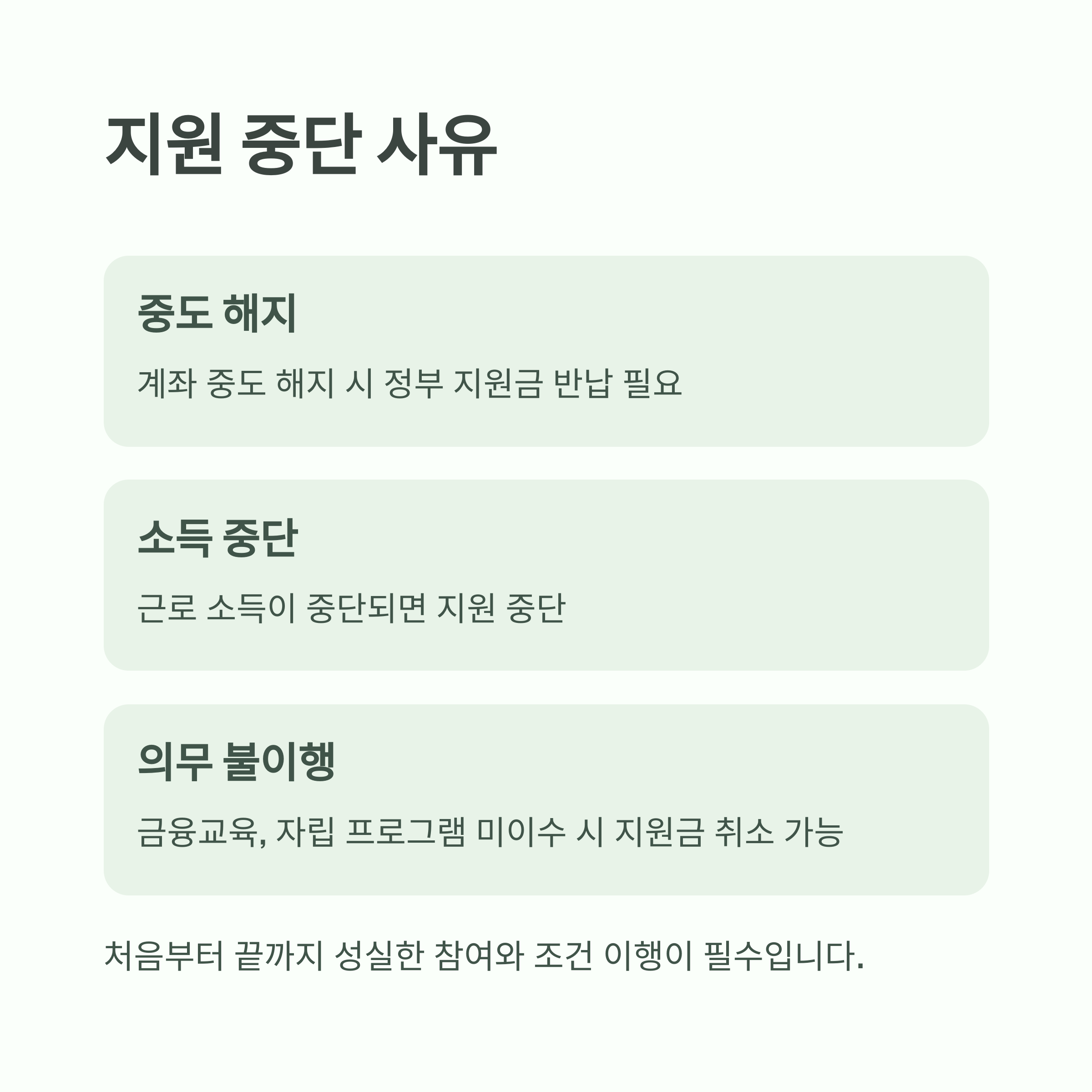 따라서 처음부터 끝까지 성실한 참여와 조건 이행이 필수입니다.