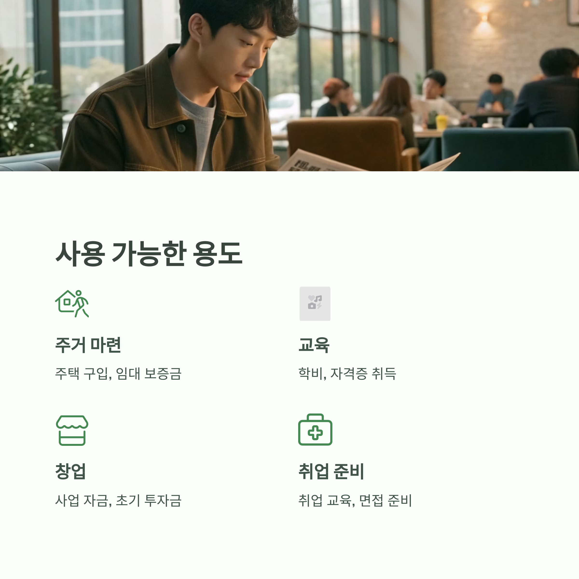 대표적으로는 주거 마련, 교육, 창업, 결혼, 고용 준비 등이 해당됩니다.