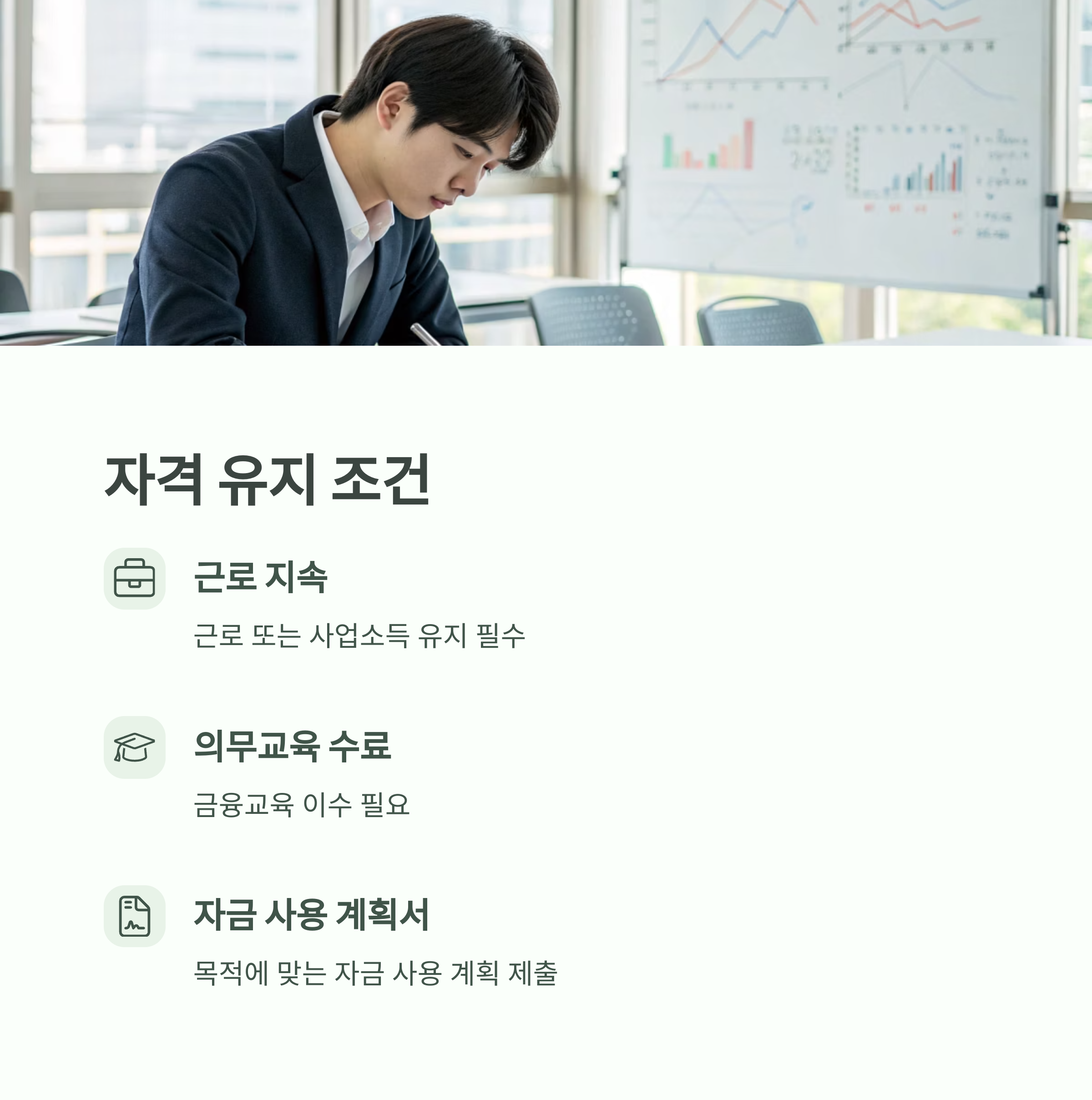 의무교육 수료, 금융교육 이수, 자금 사용 계획서 제출 등