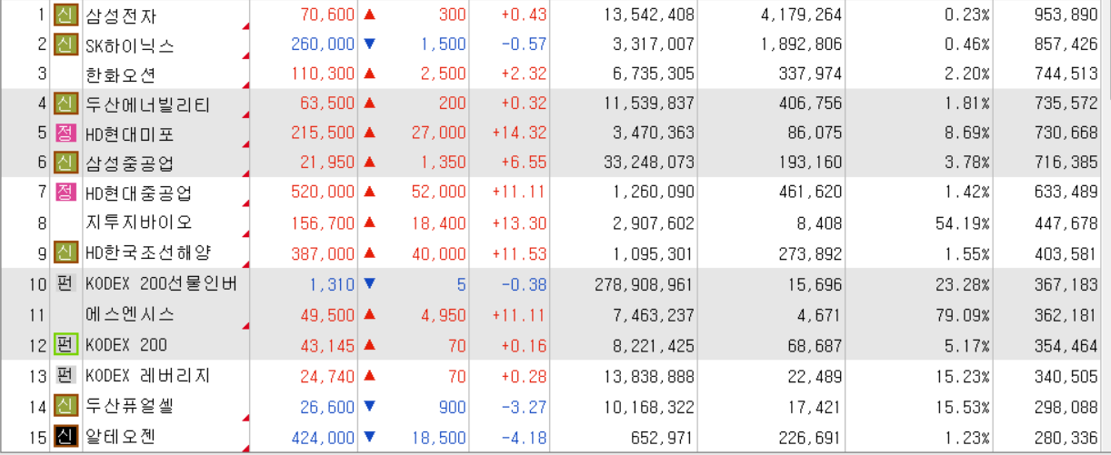 시장 코멘트: 코스피와 코스닥 지수만 보면 거의 움직임이 없는 듯한 착시를 일으킵니다. 하지만 거래대금이 코스피에서 8.8조, 코스닥에서 4.7조 원가량 으로 많이 줄어들었지만 개별 종목과 섹터별로는 엄청난 변동성이 있었습니다.