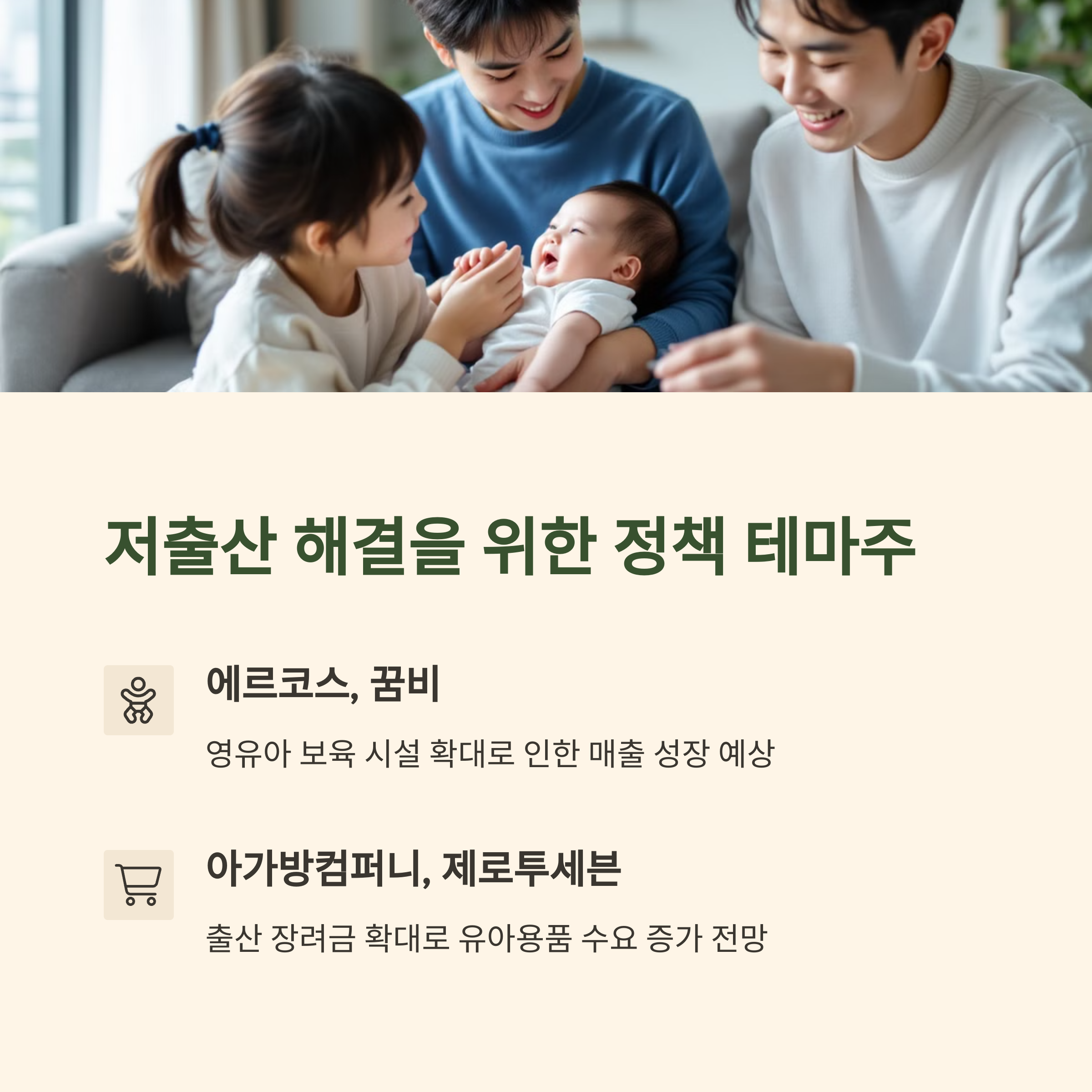 이들 기업은 정부 보육 예산 증가, 출산율 회복 기대감이 커질수록 주목받을 가능성이 큽니다.