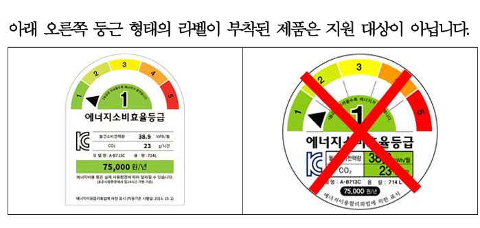구매가 인정을 받으려면 제품 라벨에 표시된 효율등급이