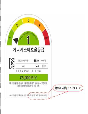 첫째, 효율등급 라벨과 적용 기준일을 확인하며 제품을