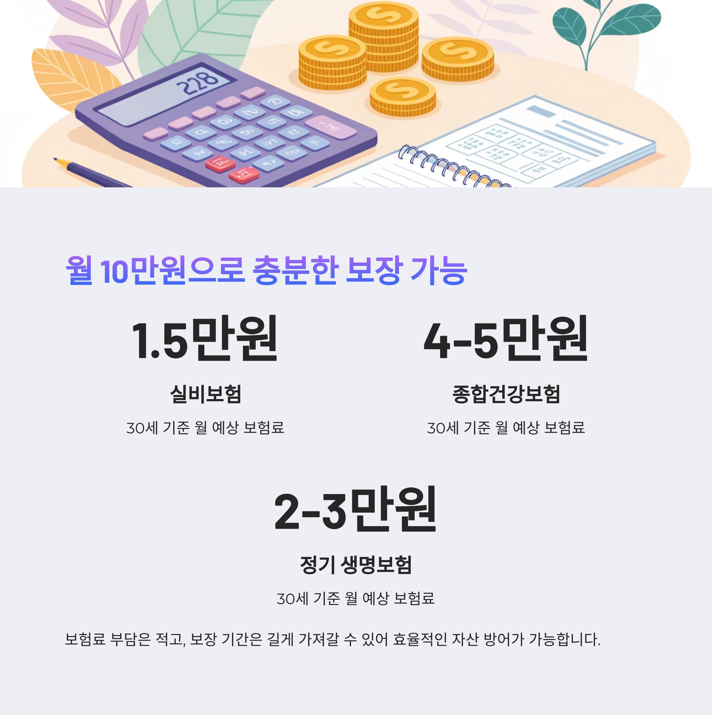 월 10만 원 내외로 충분한 보장 구성이 가능합니다.