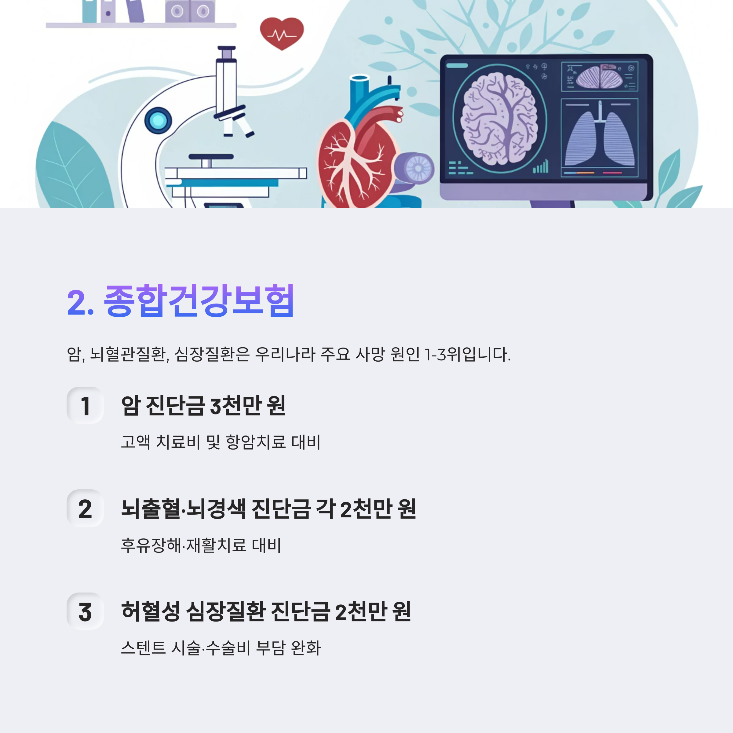 2. 종합건강보험: 암, 뇌질환, 심장질환 대비
