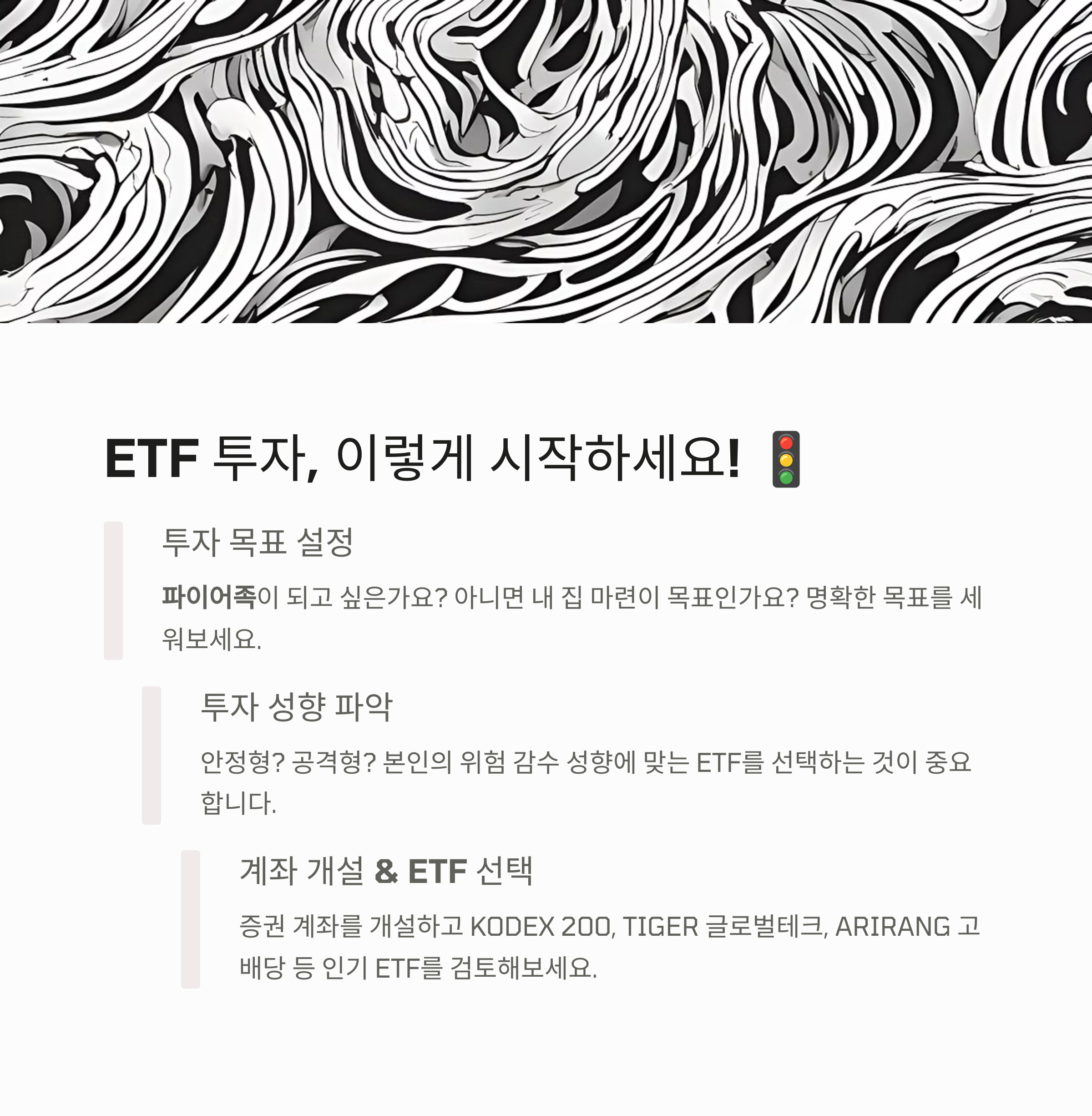 주식 투자는 소액으로 시작할 수 있고, 배당 수익과 시세 차익이라는 두 마리 토끼를 잡을 수 있습니다. 특히 ETF, 배당주, 장기투자 전략을 조합하면 리스크를 줄이면서도 안정적인 수익을 기대할 수 있습니다.