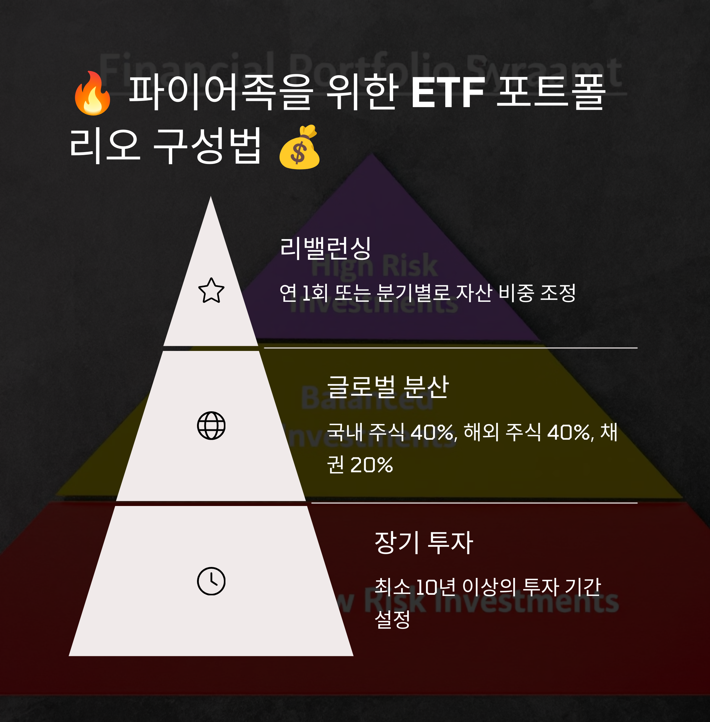 - 해외 ETF: VOO (미국 S&P500), QQQ (나스닥 중심), VT (전 세계 주식)