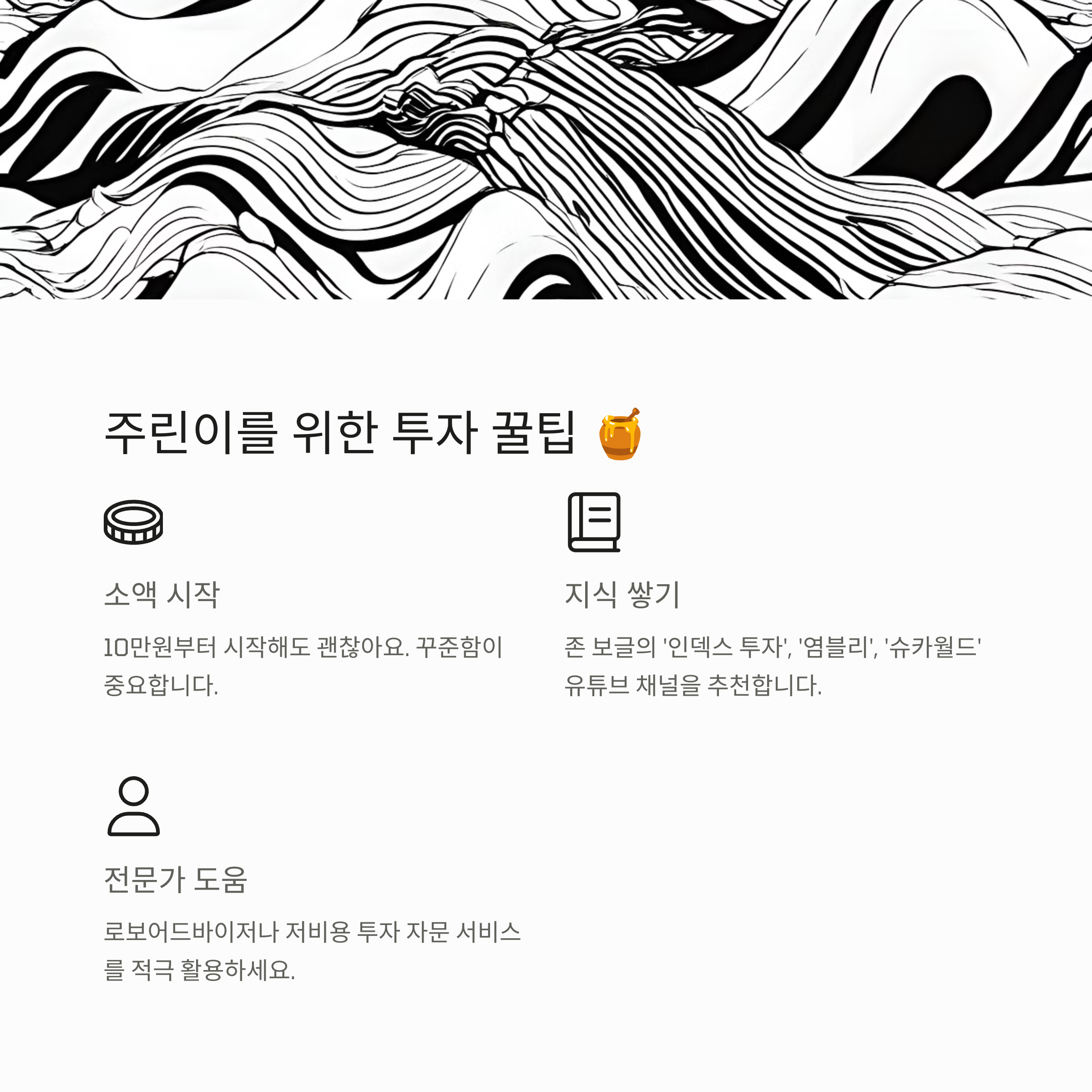 투자는 단순히 돈을 벌기 위한 수단이 아닙니다. 더 나은 미래를 계획하고 준비하는 과정이며, 삶의 ‘자율성’을 확보하기 위한 수단입니다. 불확실한 시대일수록 더 확실하게 준비해야 합니다.