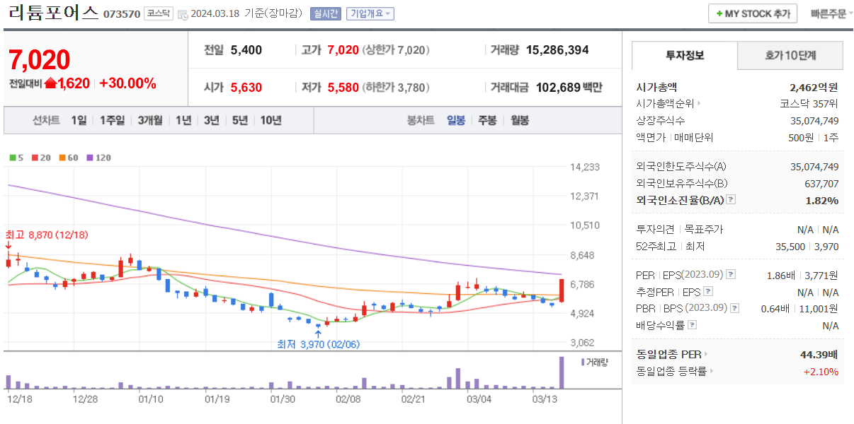 오늘 상한가 이유로는 리튬관련해서 볼리비아 염호 개발 1단계 심사 통과 이슈로 인해서