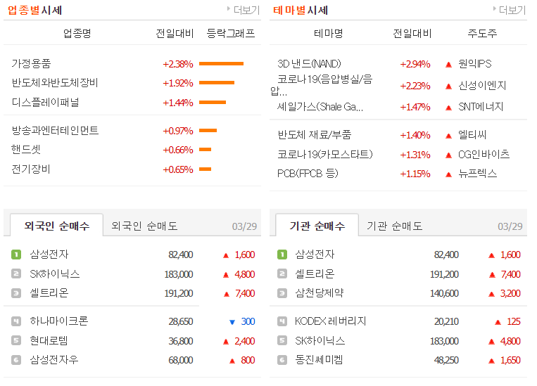 외국인과 기관 순매수 상위에서도 반도체 섹터인 삼전, 하이닉스를 계속 순매수를 하고