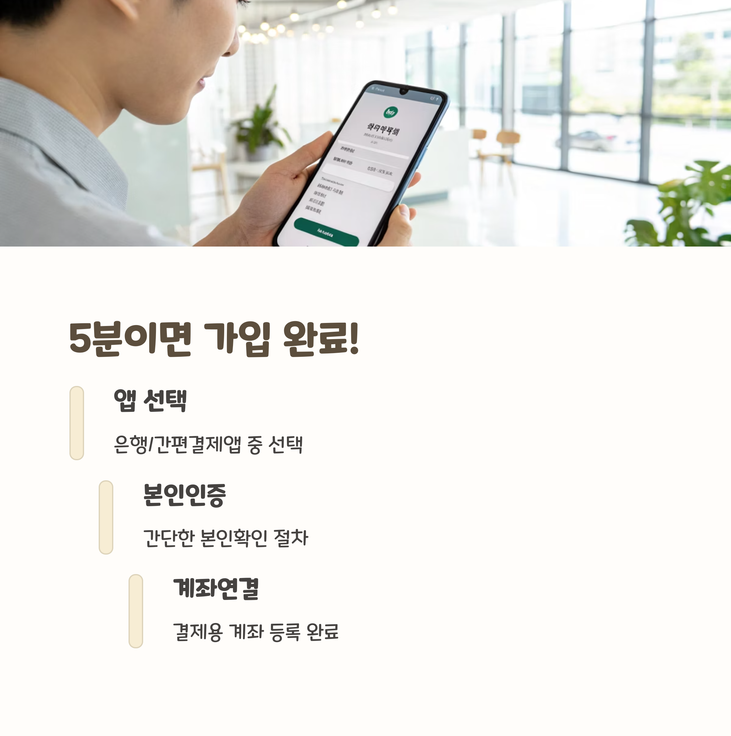 "본인이 주로 쓰는 은행이나 간편결제 앱을 통해 바로 연동 가능합니다"