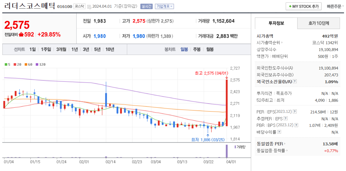 오늘 상한가 이유로는 수출 회복 실적 이슈와 함께 화장품 대장주가 크게 상승을 했고 비교적