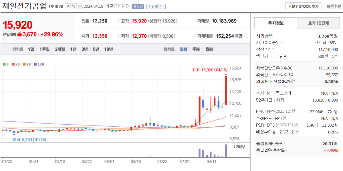 [급등락주 짚어보기] 제일전기공업, AI발 전력 수요 급증 전망에 상한가 - 이투데이 (etoday.co.kr)