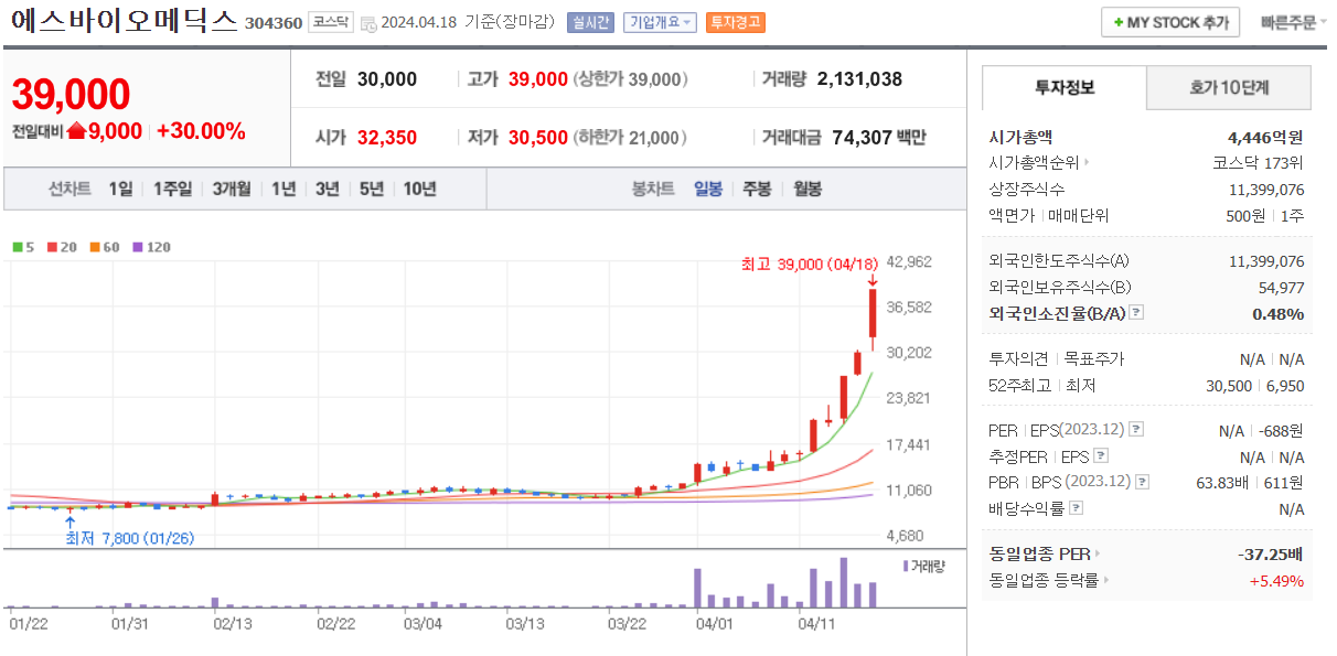 에스바이오메딕스, 파킨슨병 치료제 기대감↑…연이은 주가 상승세 기록 (medipana.com)