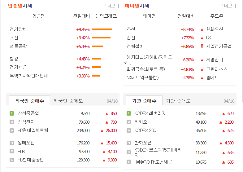 철강, 조선 관련주들의 상승이 있었습니다. 일단 시장의 수급 공백이 생기면서 쏠림 현상으로