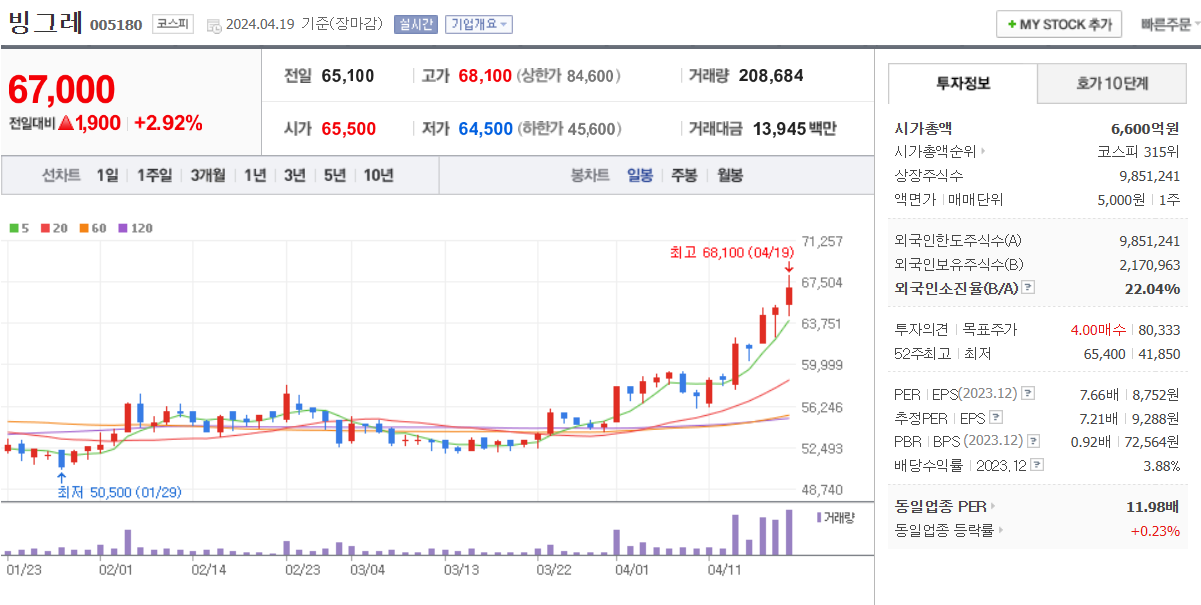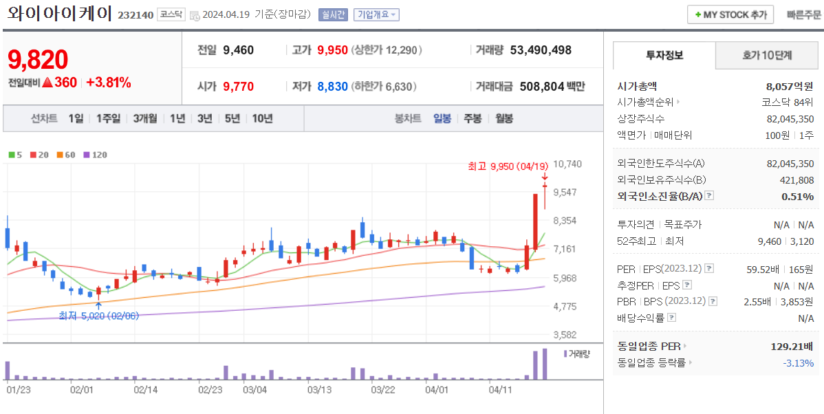 4월 인데 벌써 더워지고 있고 실적 기대감에 4월부터 크게 상승을 하면서 신고가를 경신하고 있습니다.