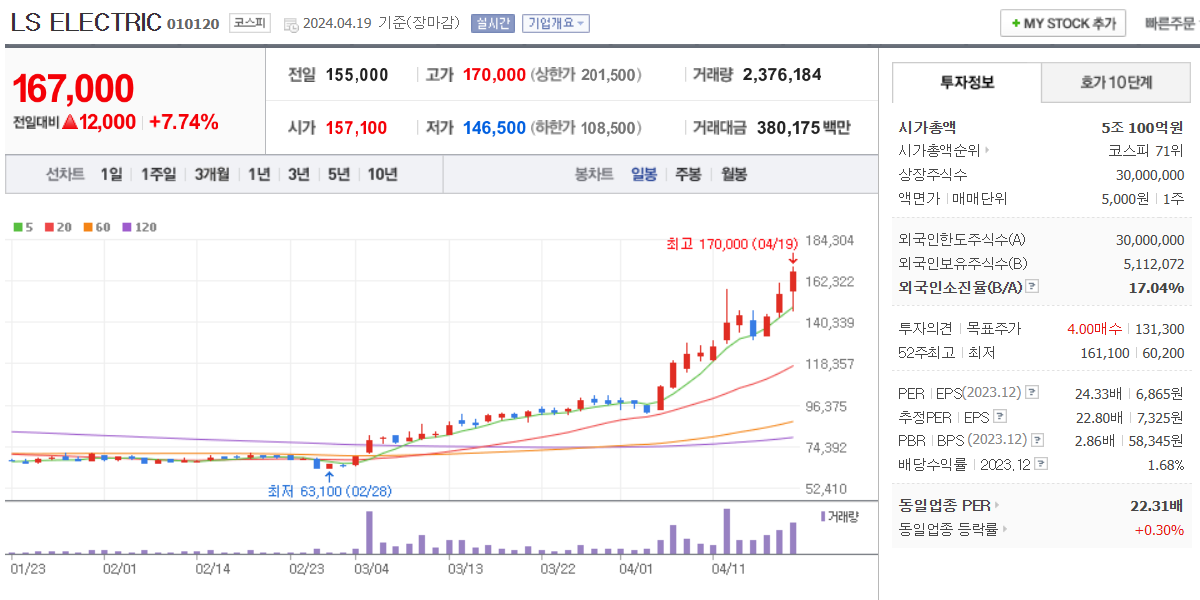 이 회사는 3월 밸류업 이슈를 타고 상승을 하다가 최근 4월부터는 다시 전력난 이슈와 함께