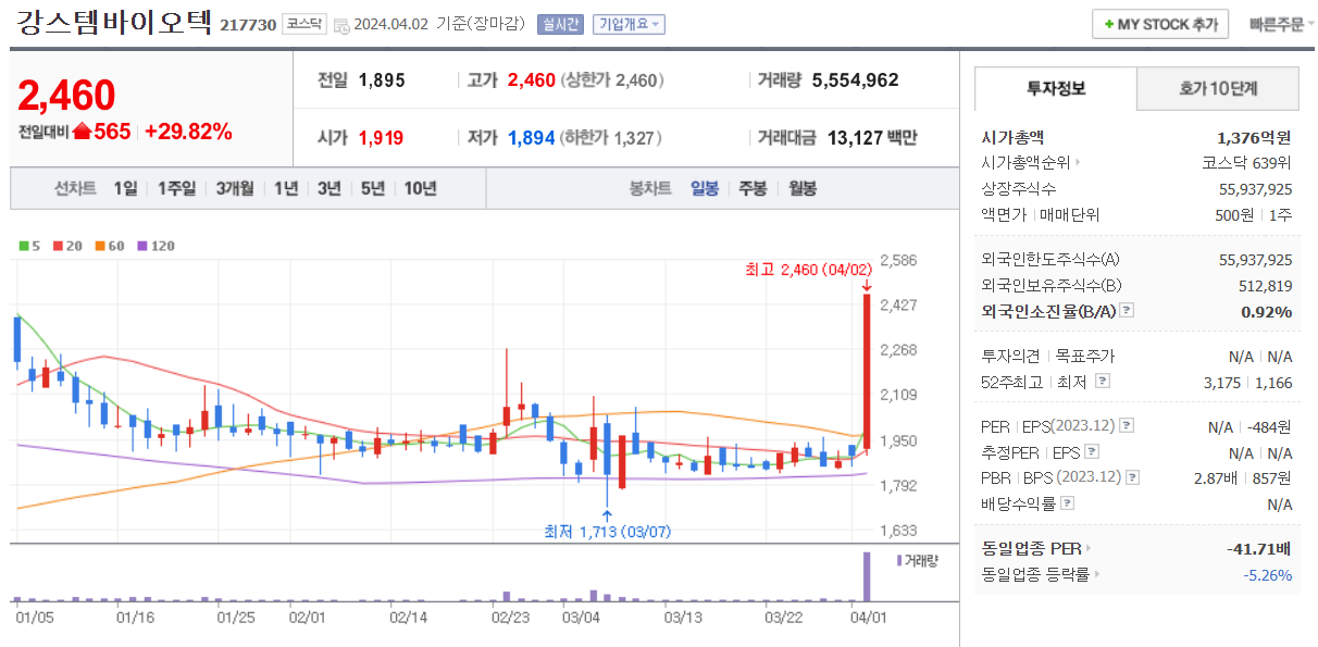 오늘 상한가 이유는 어제 아토피 피부염 줄기세포 치료제를 사용승인받았다는 이슈가 나오면서
