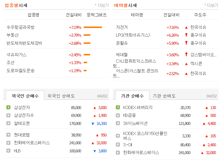 특히 삼성전자의 외국인 대량 매수로 인해서 신고가를 경신했고 우주항공방산  관련주인
