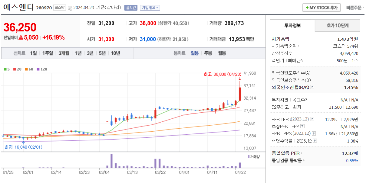 유안타인베스트, 공개매수 진행 '에스앤디' 엑시트 기대감 [넘버스] (naver.com)