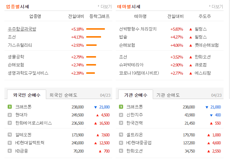 하락 마감을 했습니다. 다만 외국인과 기관의 순매수 상위 종목으로 올라가면서