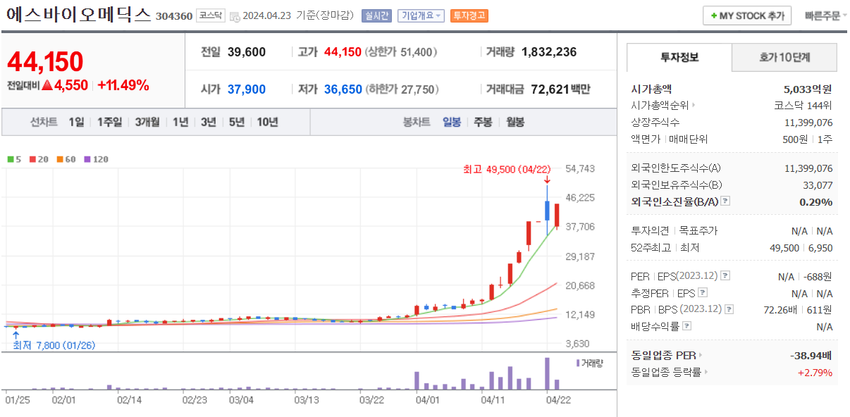 바이오 - 에스바이오메딕스(11.49%), 에이비엘바이오(7.59%), 리가켐바이오(7.28%), 한국유니온 제약(6.5%)