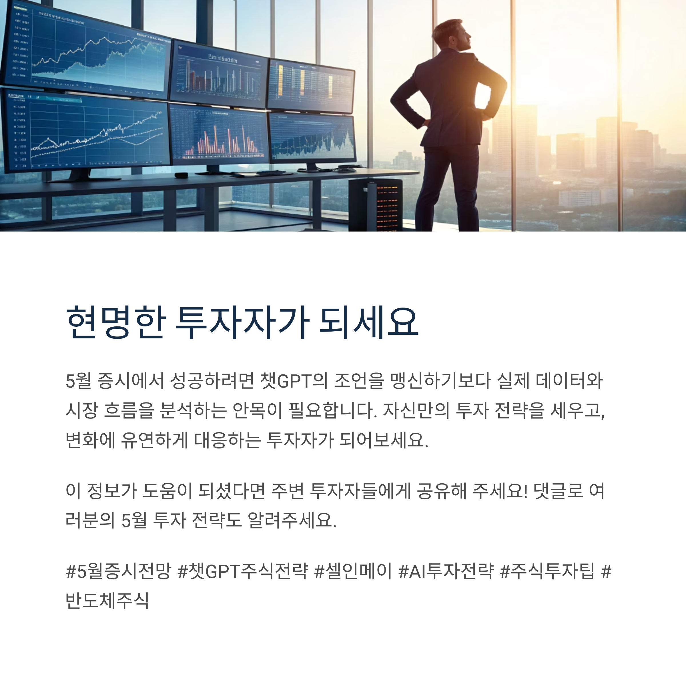 #5월증시전망 #챗GPT주식전략 #셀인메이 #AI투자전략 #주식투자팁 #반도체주식 챗GPT전략, 주식시장, 투자분석, 증시데이터, 블로그글쓰기