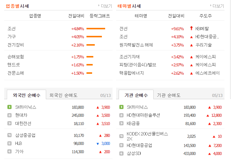| 5월 14일 주식 상한가 종목 및 시황 정리 (0) | 2024.05.15 |
