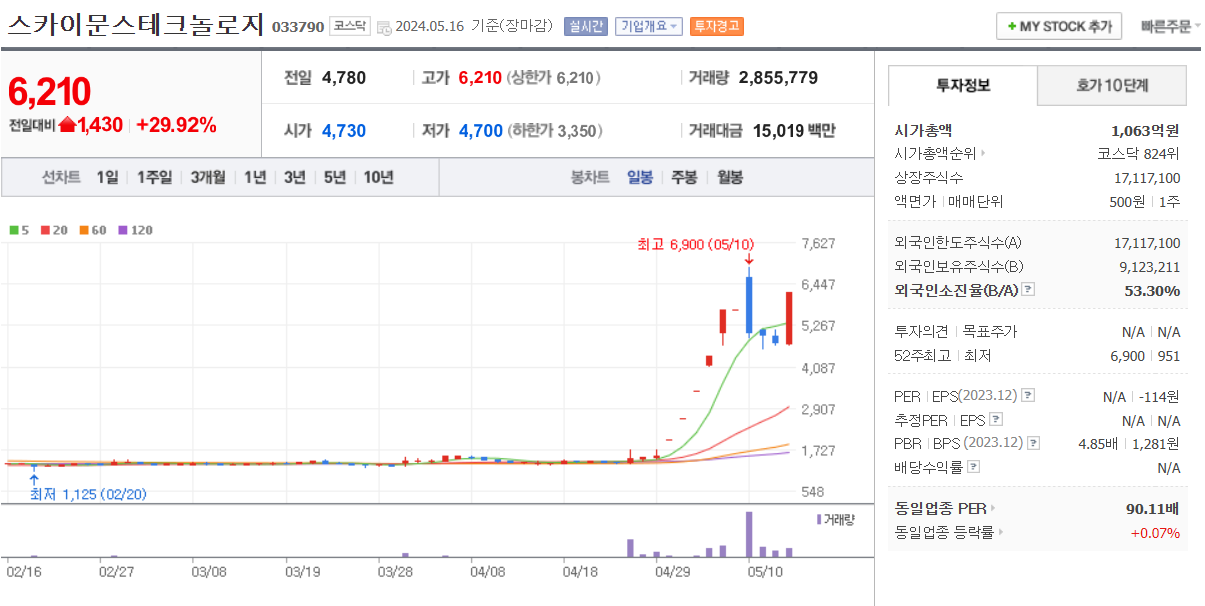 설명했듯이 중국회사와 엮이면 위험합니다. 단기 고점일 수도 있고 아니면 더 갈 수 있을지 모르지만 큰 수익