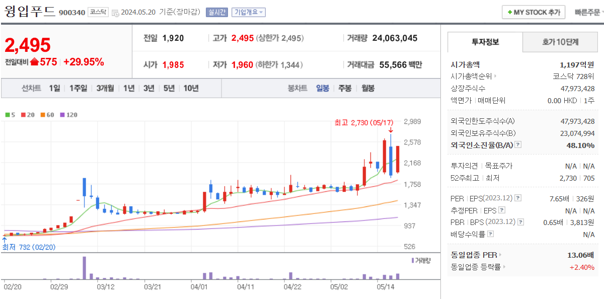 상한가 이유로는 미국 증권거래위원회에 상장신청서를 제출했다는 이슈로 다시 한번 상한가 간 것으로
