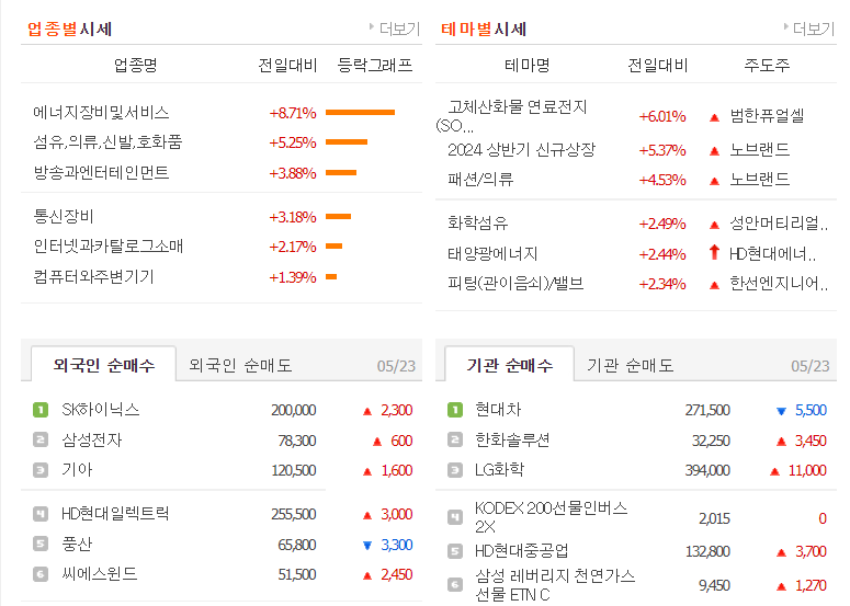 했습니다. 외국인 순매수 상위종목에 에너지 관련주인 풍력주 그리고 반도체, 자동차, 전력주