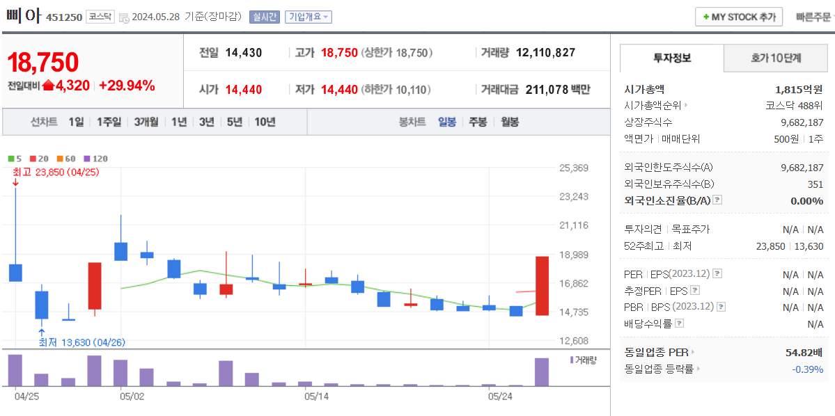 최근 K-뷰티 화장품주 강세로 수급이 좋기 때문에 상승여력은 있어 보입니다.
