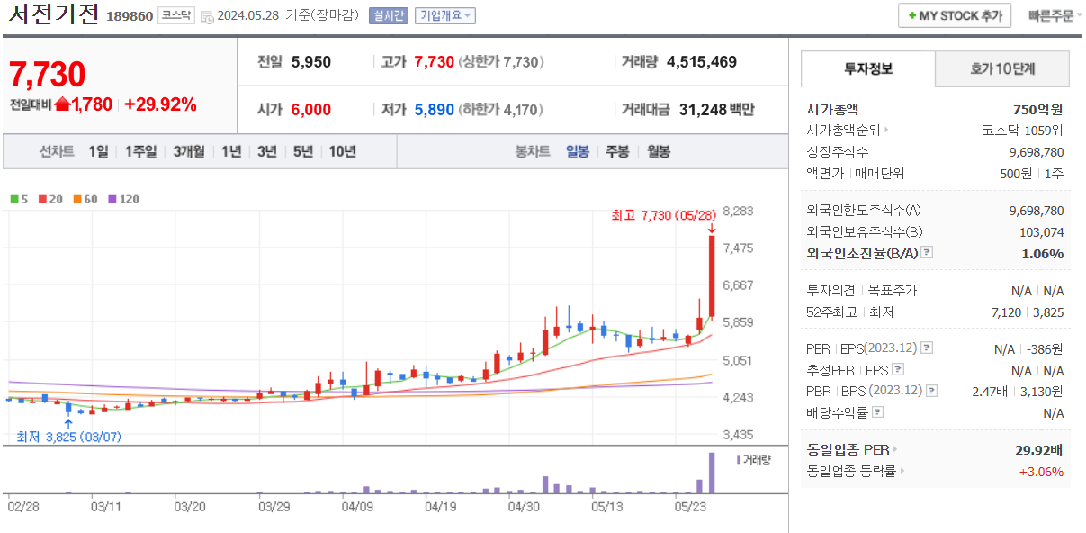 이슈와 함께 수급이 몰리면서 상한가 마감을 한 것으로 보입니다.