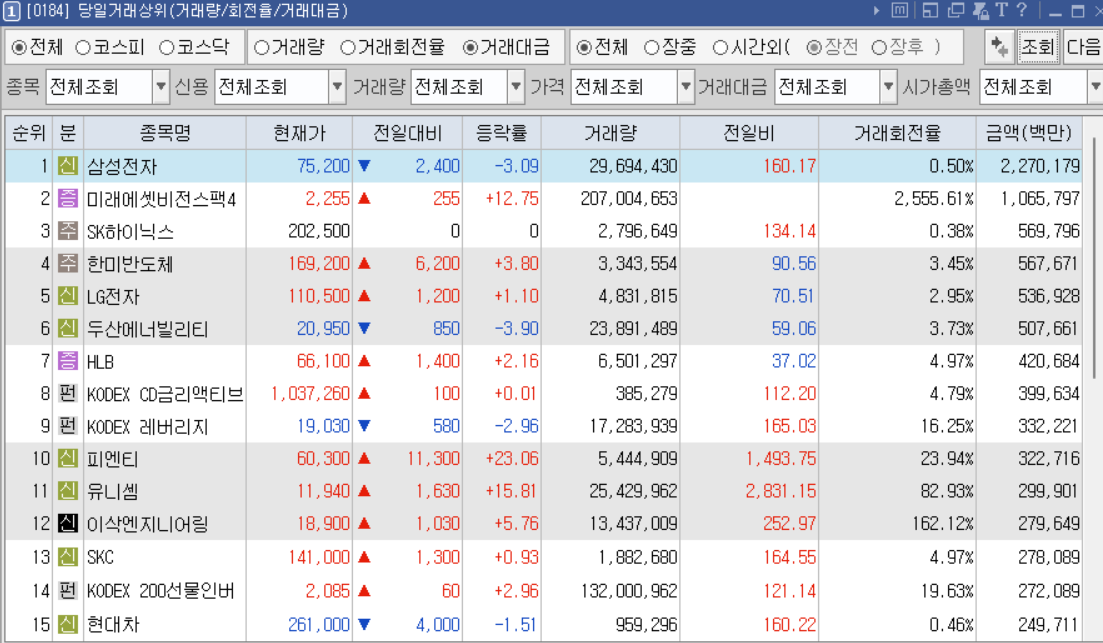 거래대금은 12조 7825억 원으로 어제보다 1조 2천억 원가량 늘어났습니다.