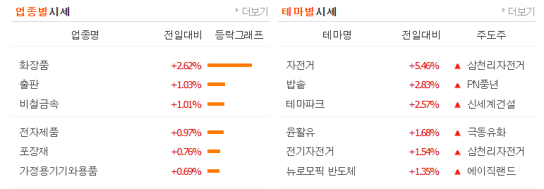 화장품 - 제이투케이바이오(상한가), 뷰티스킨(21.18%), 토니모리(12.78%), 한국화장품제조(8.56%)