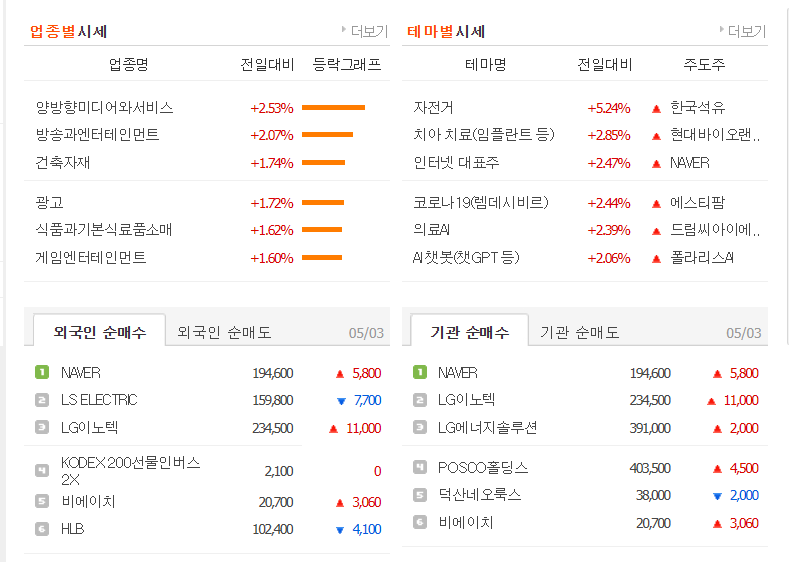많이 반납을 했고 외국인 기관 순매수 상위종목에 관련주인 네이버도 올라왔습니다.