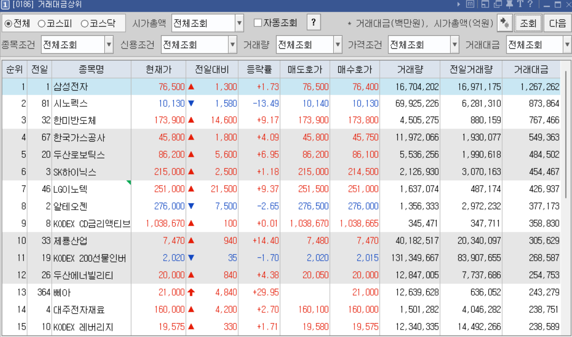 오늘 거래대금 상위종목을 보면 한미반도체가 신고가를 경신하면서 상위에 올랐고 계속해서 한국가스공사가