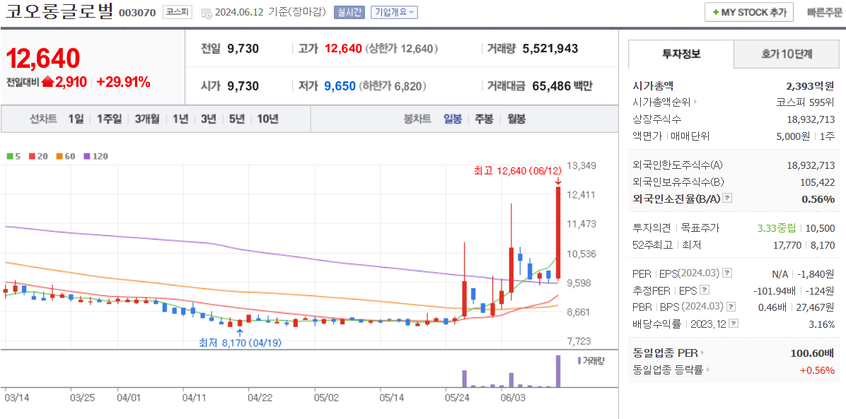 | 6월 13일 주식 상한가 종목 및 시황 정리 (1) | 2024.06.13 |