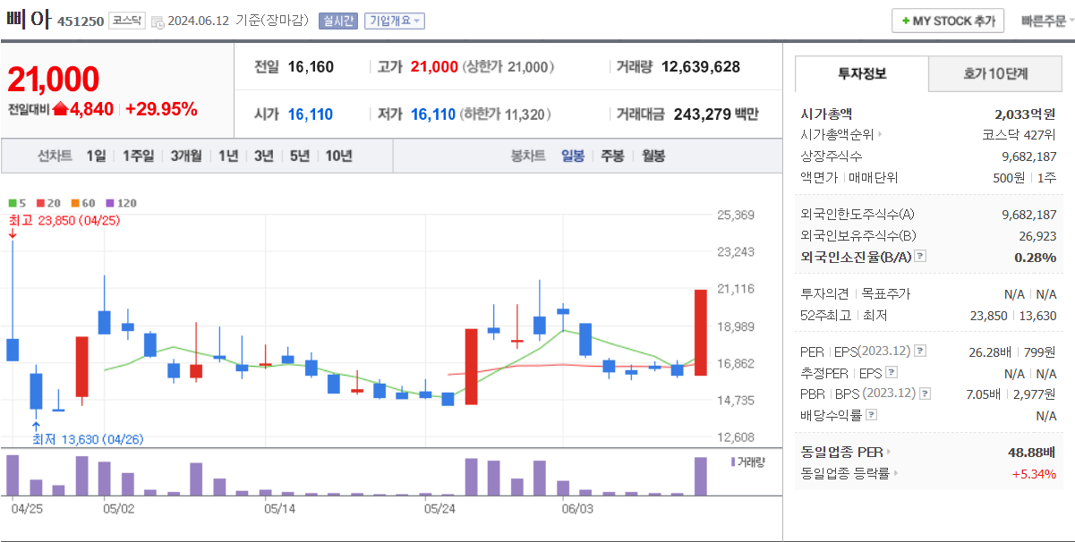 했습니다. 화장품주인 삐아가 거래대금상위에 올라오면서 상한가 마감을 했고 어제 상한가마감에 이어
