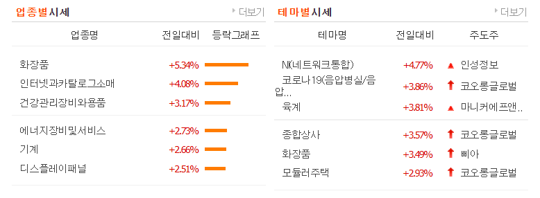 코스닥 시총상위종목에서 반도체 제약을 중심으로 상승을 했고 화장품 섹터에서 큰 상승을 했습니다.
