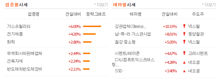 철강 시추 관련 - 넥스틸(상한가), 동양철관(상한가), 휴스틸(19.83%), 화성밸브(14.73%), 웨이버스(20.91%)