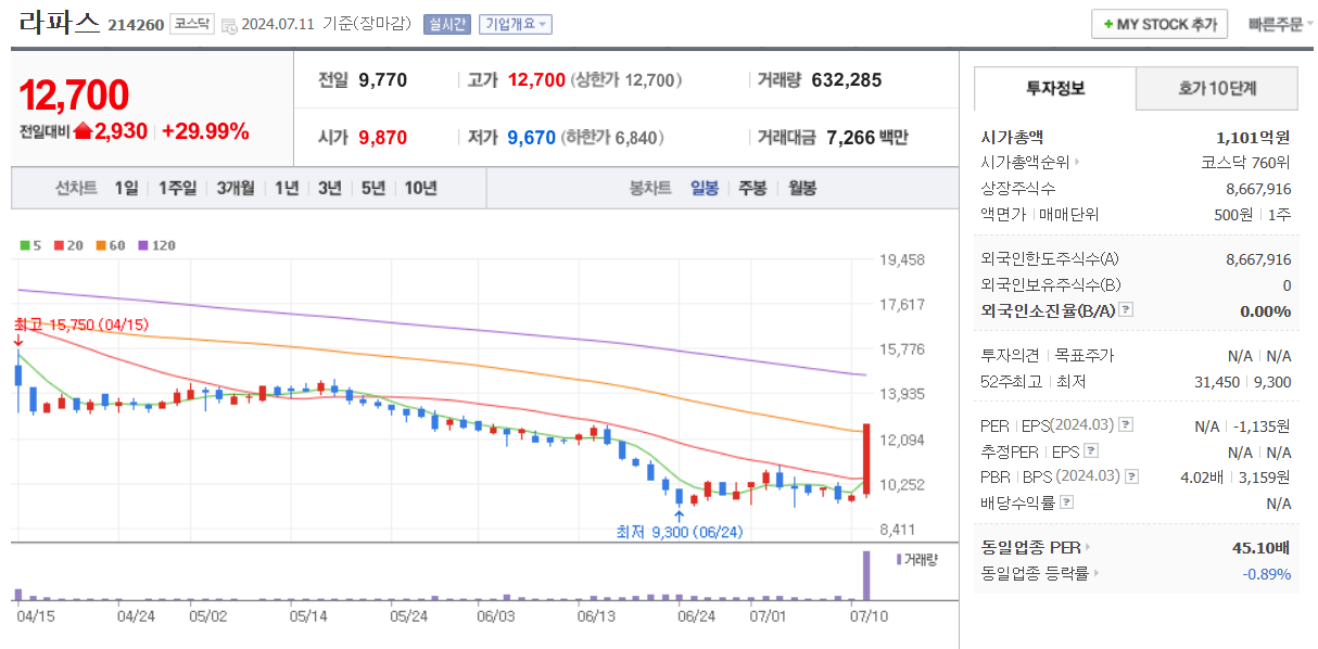 개별이슈 - 라파스(상한가) 위고비 패치 임상 1상 10월 종료 이슈