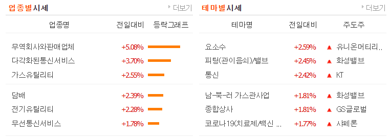 오늘 시장은 양시장 하락에 따라서 대부분 종목이 하락을 했고 경기방어주 섹터에서 반등이 나오며 상승을
