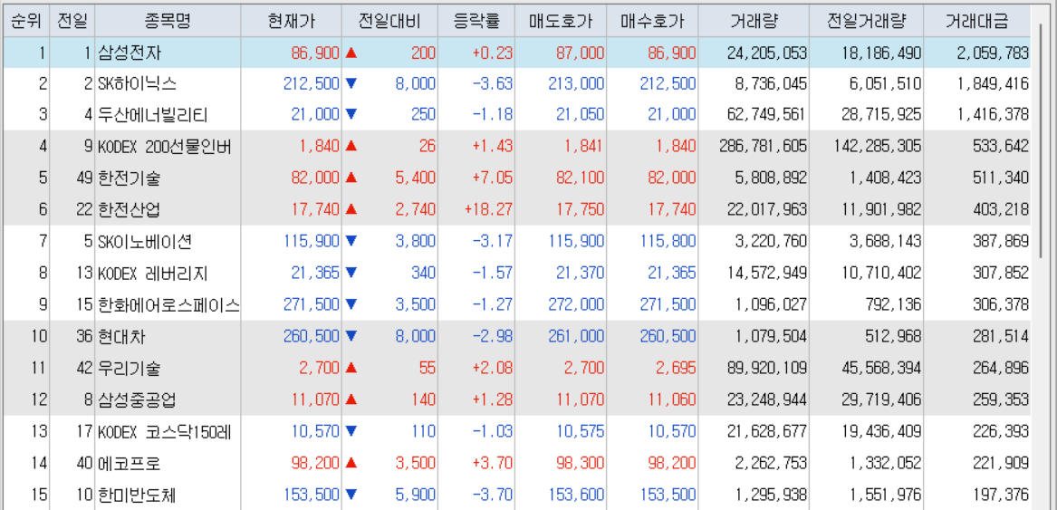 거래대금은 15조 865억 원으로 어제보다 1조원 가량 늘어났습니다.