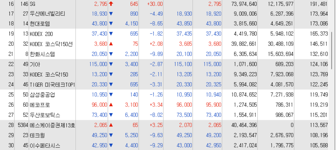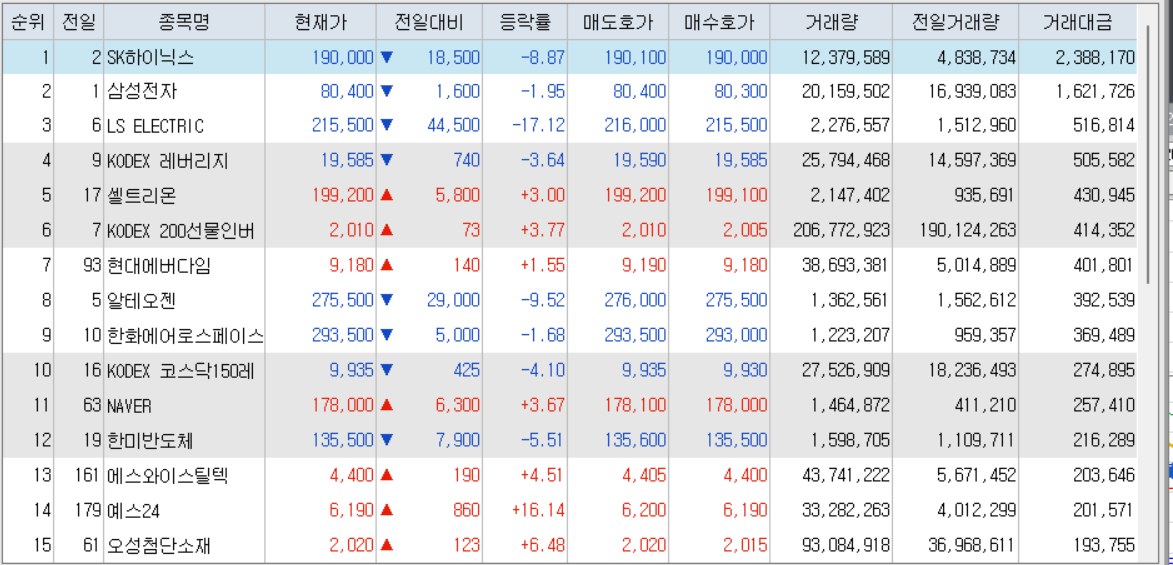 오늘 거래대금 상위종목에서는 SK하이닉스가 삼성전자를 제치고 거래대금 1위를 차지했는데