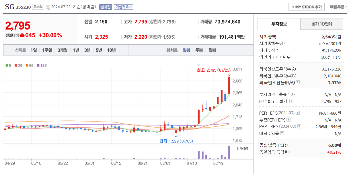 | 7월 24일 주식 상한가 종목 및 시황 정리 (15) | 2024.07.24 |
