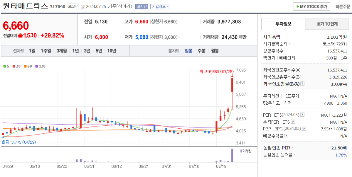 하고 있습니다. 오늘 상한가 이유로는 항생제 검사 솔루션의 완전자동화를 이룰 원천기술 확보이슈로 인해서