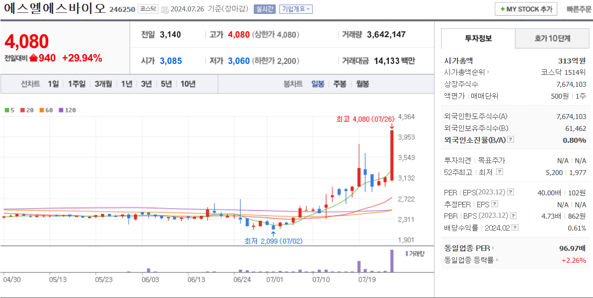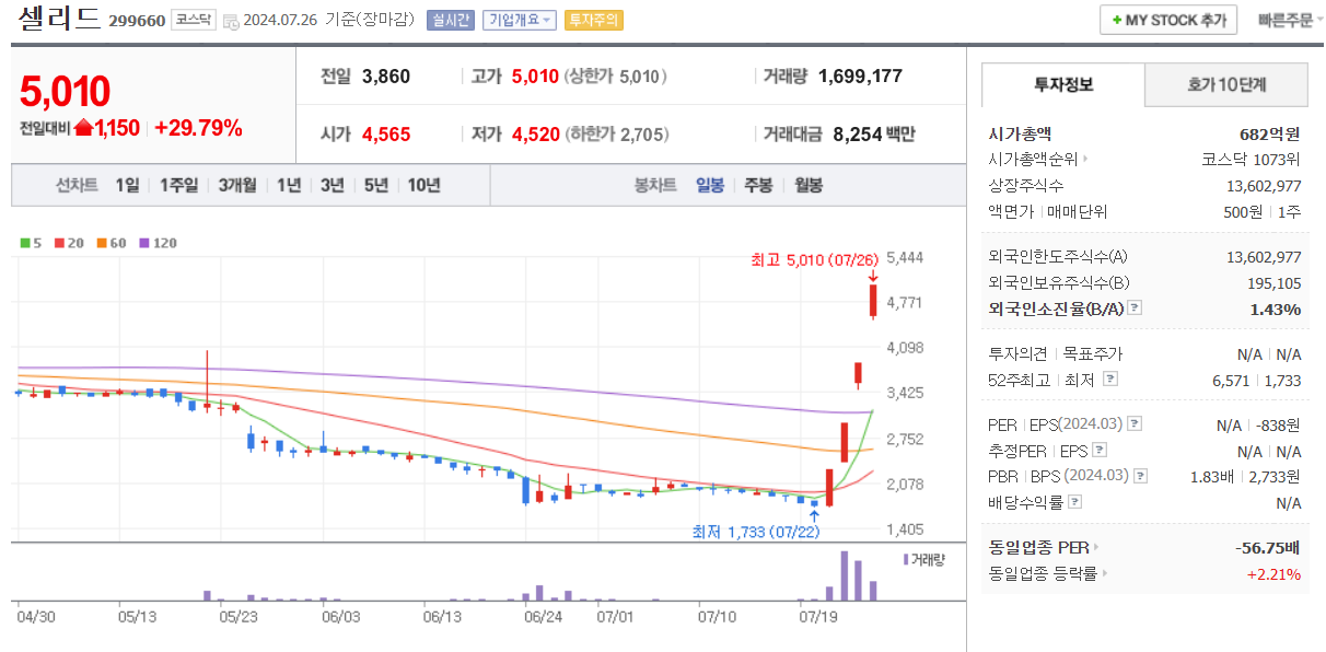 계속해서 상한가 마감을 하고 있습니다. 그래서 바이오 테마가 나오면서 섹터 전체 작은 이슈로 인해