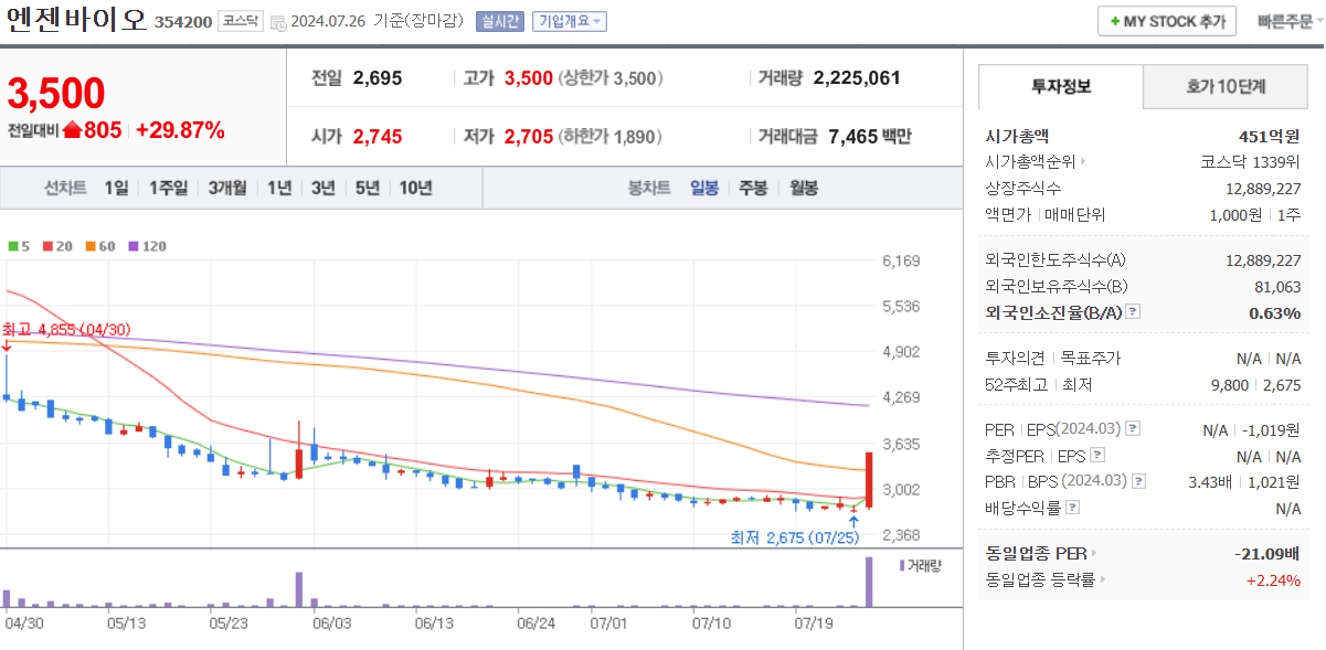 엔젠바이오(상한가) 글로벌 제약사 바이엘코리아와 진단 및 항암 업무체결이슈