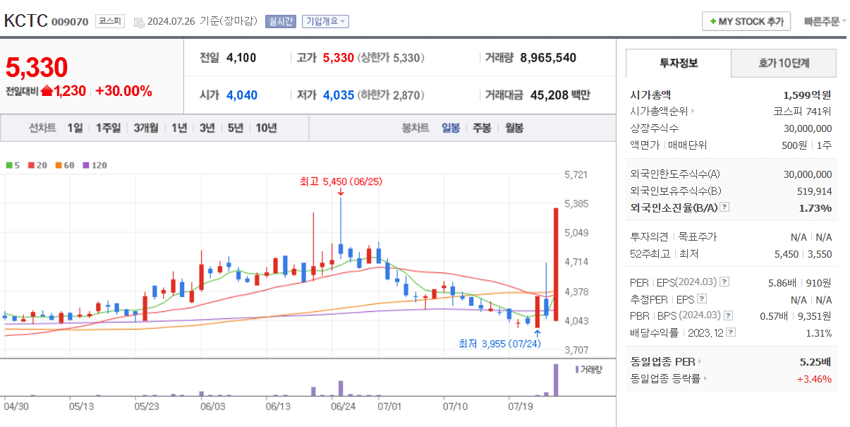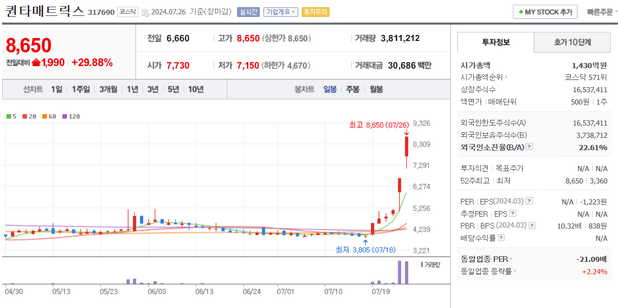 상한가 마감을 하고 있습니다. 차트상으로 바닥권에 상승을 하고 있기 때문에 어디까지 상승할지는 모르지만